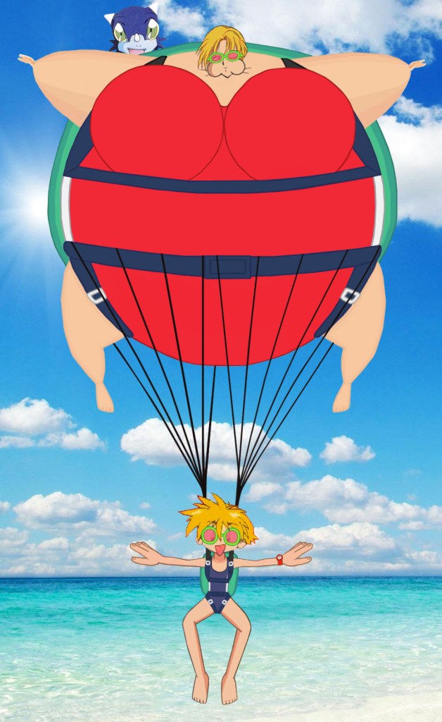 …and at the beach to celebrate her 17th/44th birthday. Image © mysuperendeavour@WordPress. Rami Nanahikari, Spot Nanahikari and Reira Nanahikari. © JVC Musical Industries/Victor Entertainment. Balloonachute © phallen1.