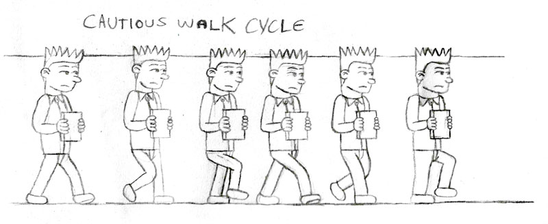 Cautious walk cycle for Greg (unused). Image © Oliver Mariager.