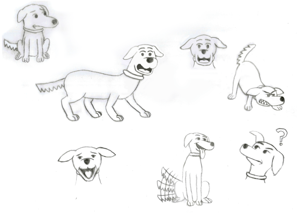 To create Greg’s nervous facial expressions in close-up shots, I traced shocked, disbelieved, nervous and worried faces from films such as Forrest Gump, Harry Potter and the Philospher’s Stone, Eternal Sunshine of the Spotless Mind and The Hobbit: An Unexpected Journey to use as reference. I used Richard Williams’ The Animator’s Survival Kit to creat neutral, calm/confident and cautious walk cycles for him. For Franky, I was inspired by Dug’s emotions from Up to depict Franky’s loyalty and care with wide eyes and a tilted head for his master Greg, and his uncertainty of whether to protect him or save the woman’ Carl’s sleeping pose in Despicable Me to fade from Greg’s monster sketch and animate Franky sleeping in his basket in Greg’s house; and Max’s confronting and shocked poses from The Secret Life of Pets and The Secret Life of Pets 2 to depict Franky’s alert when hearing the woman scream and deciding whether to protect Greg or save the woman, and his aggressive defence pose before charging over. When Franky bites the mugger’s leg, I used a scene from Animal Planet: Dog Bites Host as a reference when animating Franky moving his body forwards and around and wriggling his bottom. I also included the model sheet for Franky (based on reference sketches in the film’s title sequence. The music for the film was composed by Kate Wintie in Logic Pro X, with the addition of stock music provided by Randolph Matthews. I looked t film scenes where the music and sound effects build to add to the tension, like Anxiety by Mayshan Kelishadi and Joker. The technique of rotoscoping was used for three scenes that were difficult to animate: the woman’s arm handing Greg’s sketchbook to him, the mugger running away, and Greg kneeling down before calling Franky.