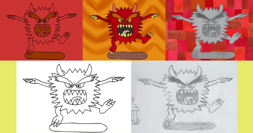 Test images, sketches and digital drawings of the monster in Greg’s sketchbook. Image © Oliver Mariager.