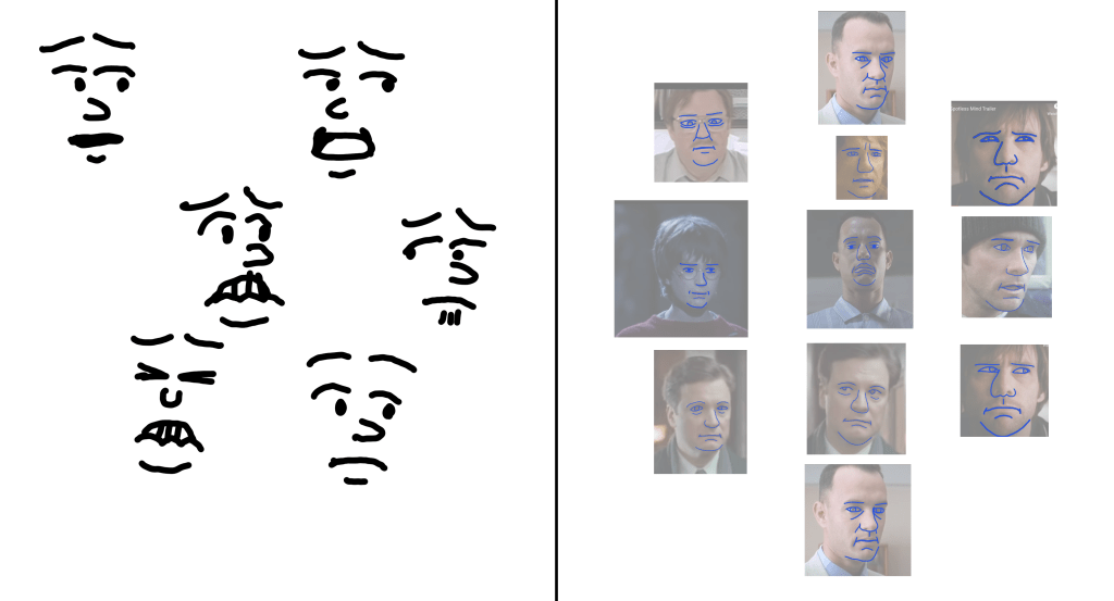 Test sketches of Greg’s nervous facial expressions and reference tracings of shocked, disbelieved, nervous and worried faces from films. Images © Oliver Mariager/Paramount Pictures/Warner Bros. Entertainment Inc./Focus Features.
