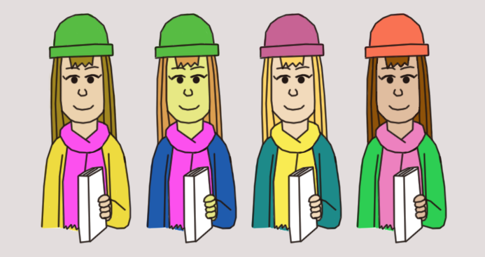 Test colours for the woman (third one chosen). Image © Oliver Mariager.