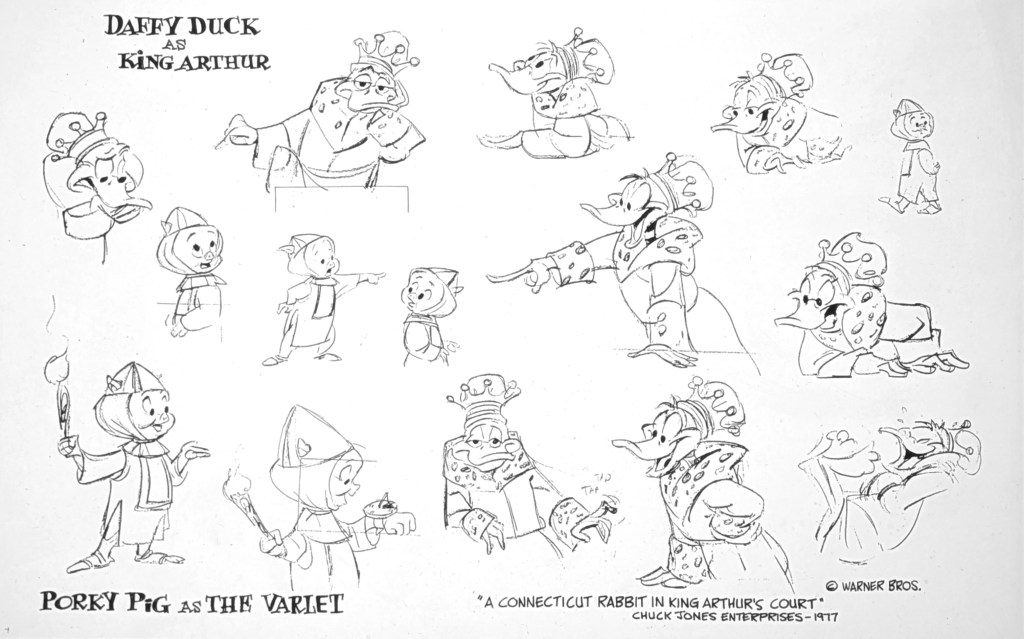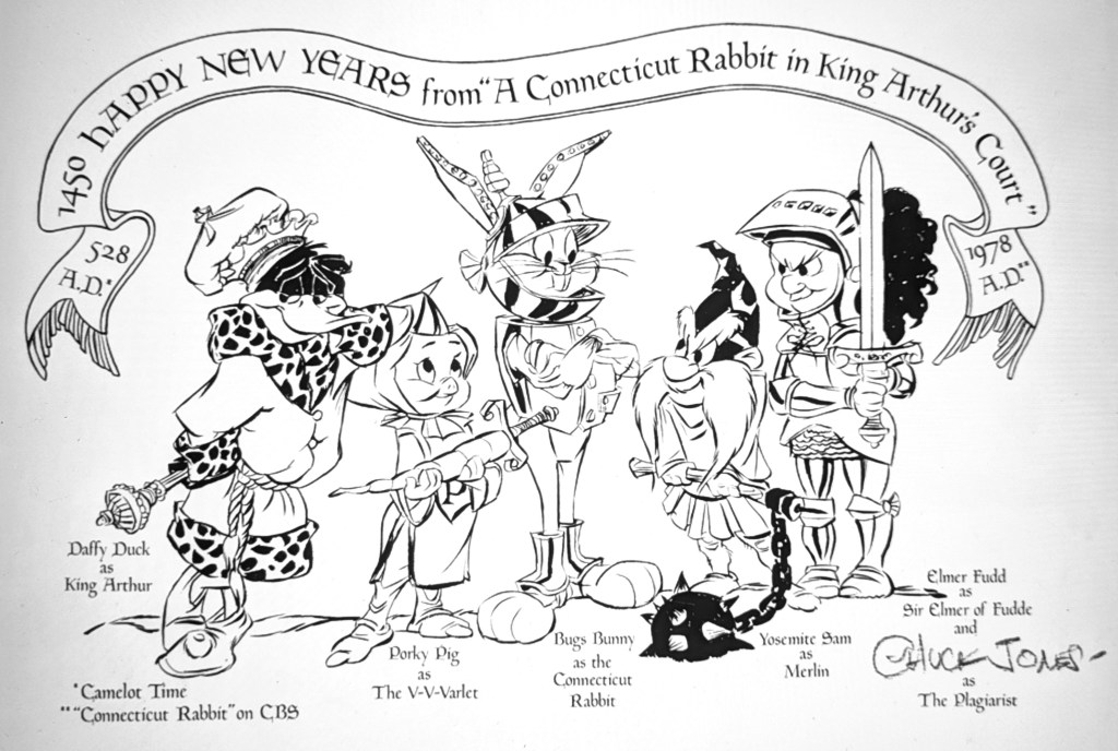 In 1977, Chuck Jones and his team of animators at Chuck Jones Enterprises began working on a much more ambitious project with permission from Warner Brothers: A Connecticut Rabbit in King Arthur’s Court. Aired on CBS on February 23, 1978, the television special was a “plagiarized” retelling of Mark Twain’s A Connecticut Yankee in King Arthur’s Court. It was rebroadcast as Bugs Bunny in King Arthur’s Court on November 22, 1978, due to the executives expecting the combined reputations of Bugs Bunny and King Arthur to be a bigger draw than a title that referenced the rabbit and hinted at an educational (and probably dull) retelling of an American literary classic, since they were more popular than Twain.[71]